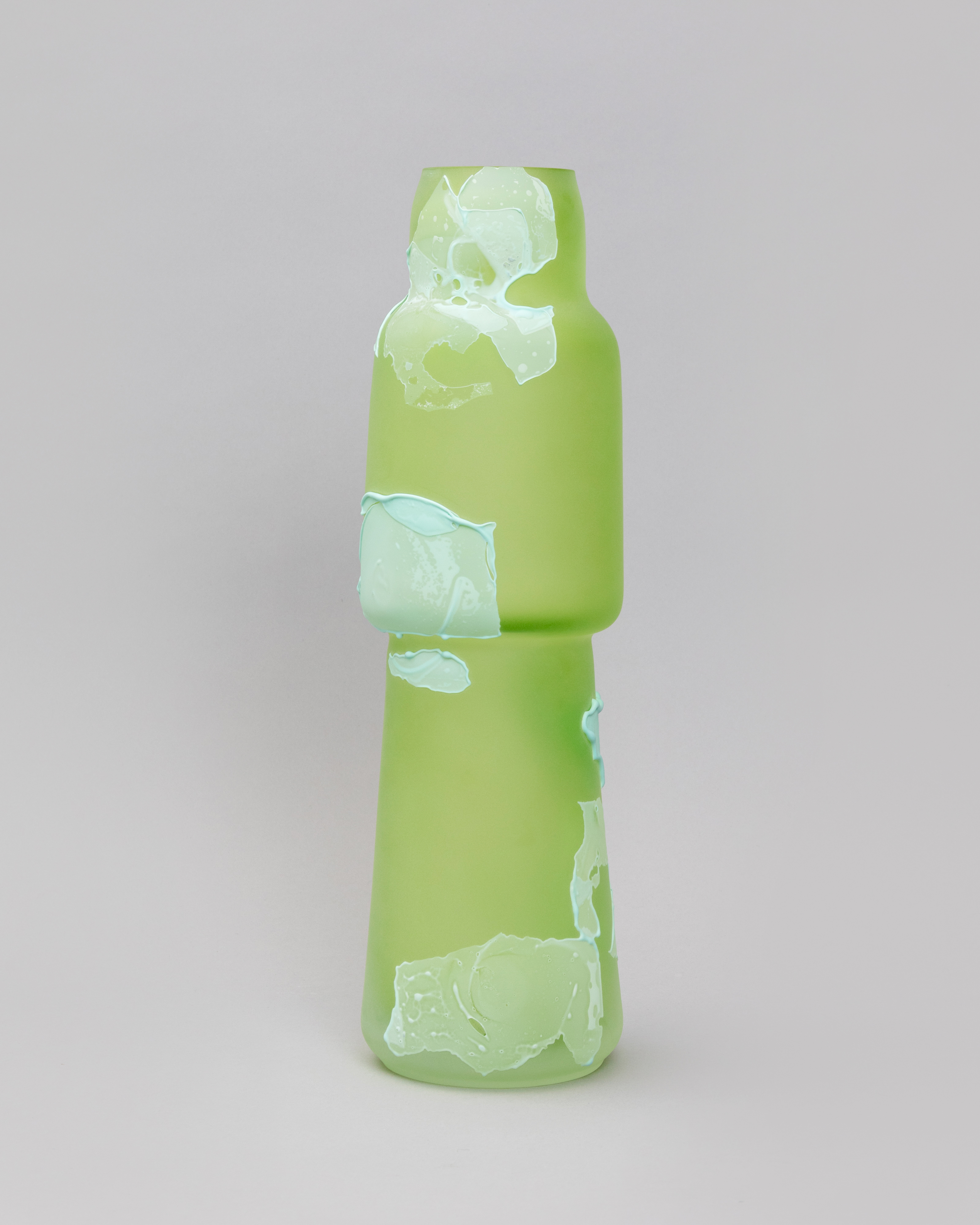 a fusion of diverse visual elements. Interpreting classical urban architecture through basic shapes, the designer blends various styles of vibrant colors, textures, proportions and diverse glass manufacture methods. The fusion of shapely monumental forms, distinctive hues, and unique organic elements challenges established traditional canons and generates a drama that commands attention in any interior.